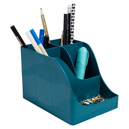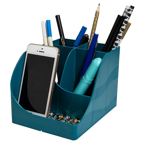 - Négy magas rekeszt kínál nagyobb eszközöknek, mint az ollók és tollak, valamint egy alacsony rekeszt kisebb tárgyaknak, mint például a gemkapcsok, rajzszögek vagy akár mobiltelefon.