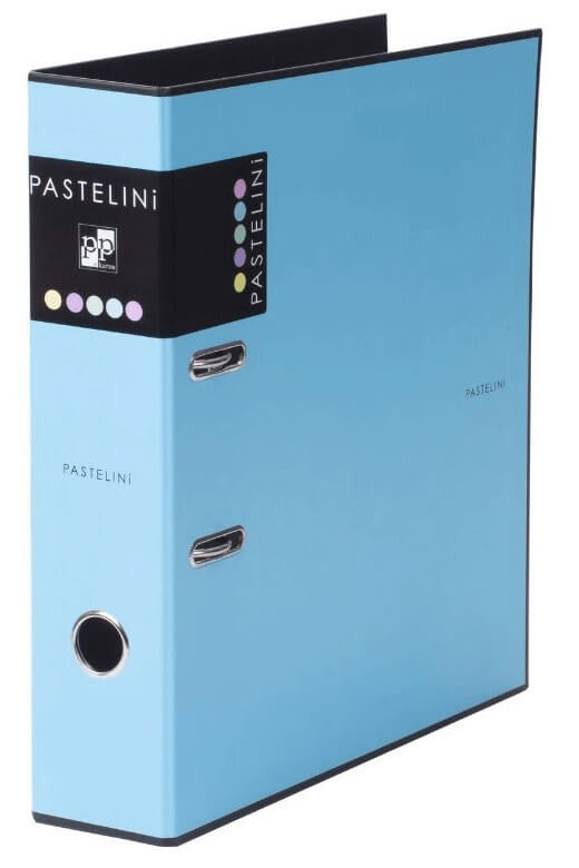 Emelőkaros iratrendező, A/4, 70mm, PASTELINI, pasztell kék. Méret: 285x320x70mm. Anyaga: laminált