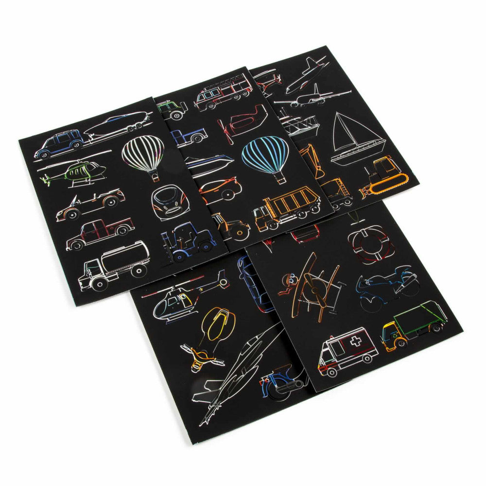 Képkarcoló szett, matricák, járművek, Kidea
