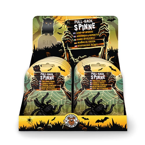 Hátborzongató fekete pók, ami ideális az ijesztgetéshez! Visszahúzó funkcióval ellátott, így versenyezni is lehet vele. Mérete: kb. 6,5 x 6,5 cm