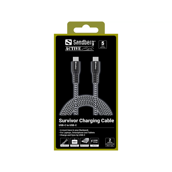 Sandberg Survivor Cable 2m töltőkábel, 100W,