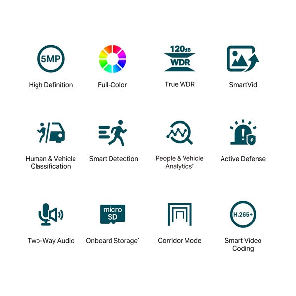 Smart Event Human & Vehicle Classification, Area Intrusion Detection, Line-Crossing Detection, People Detection, Vehicle Detection, Region Entering Detection, Region Exiting Detection, Object Abandoned Detection, Object Removal Detection, Loitering Detection