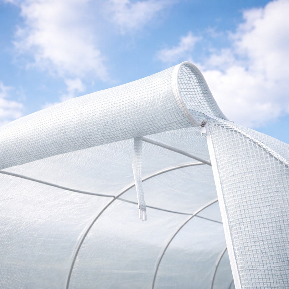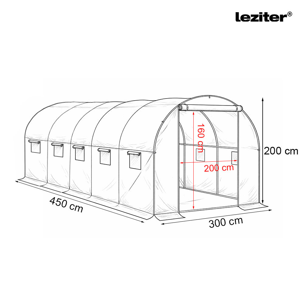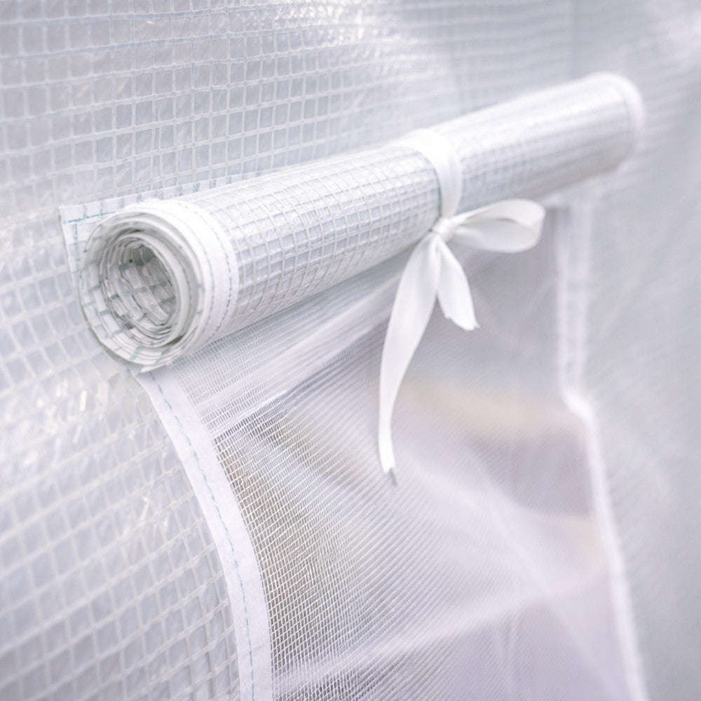 A modern fóliasátor praktikus, felhajtható ajtóval van ellátva, ami egyszerűvé teszi a belépést. A sátor 8 oldalsó szellőzőnyílása hálóval van ellátva, hogy megakadályozza a rovarok bejutását, miközben biztosítja a megfelelő légáramlást. Az ablakok segítik a nedvesség szabályozását, így növelve a terméshozamot.