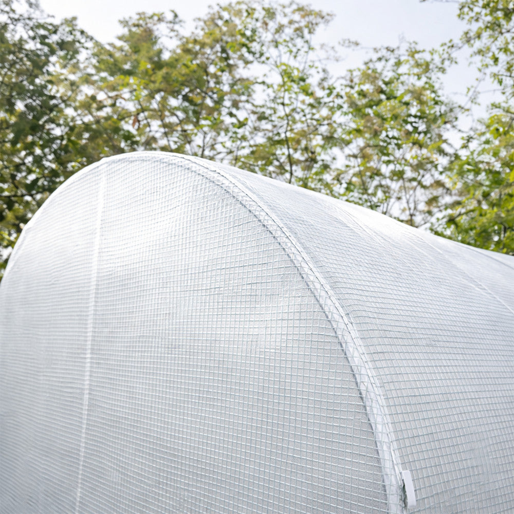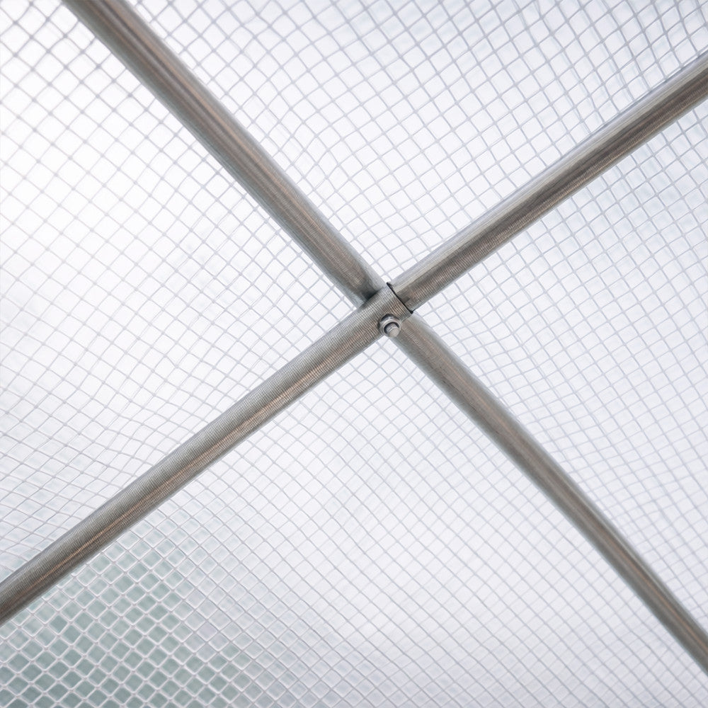A fóliasátor masszív, erősített vázzal rendelkezik, amely horganyzott acélból készült, így jóval strapabíróbb és stabilabb, mint a hagyományos szerkezetek. Az acél váz ellen áll a korrózióna. Az oldalfalak rögzítése biztosítja, hogy a sátor stabilan a talajhoz legyen rögzítve, megakadályozva a fólia elmozdulását, és garantálva a tartós szerkezetet.