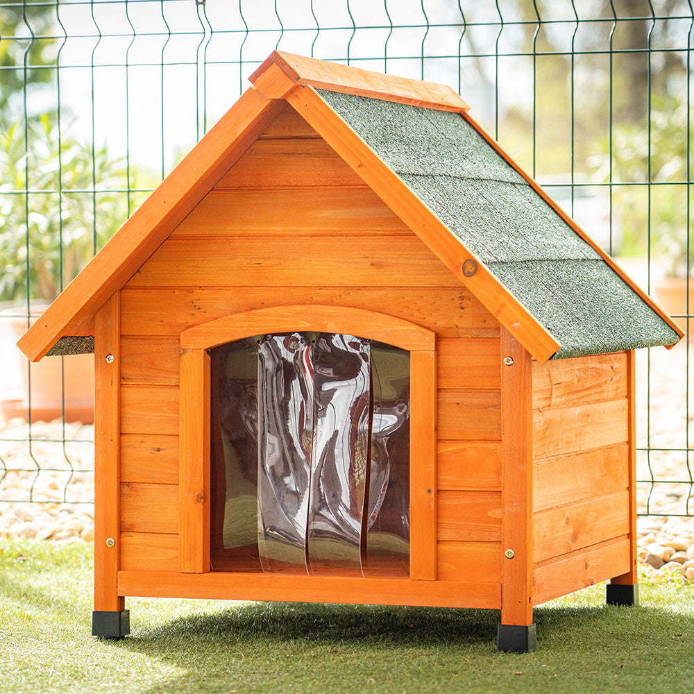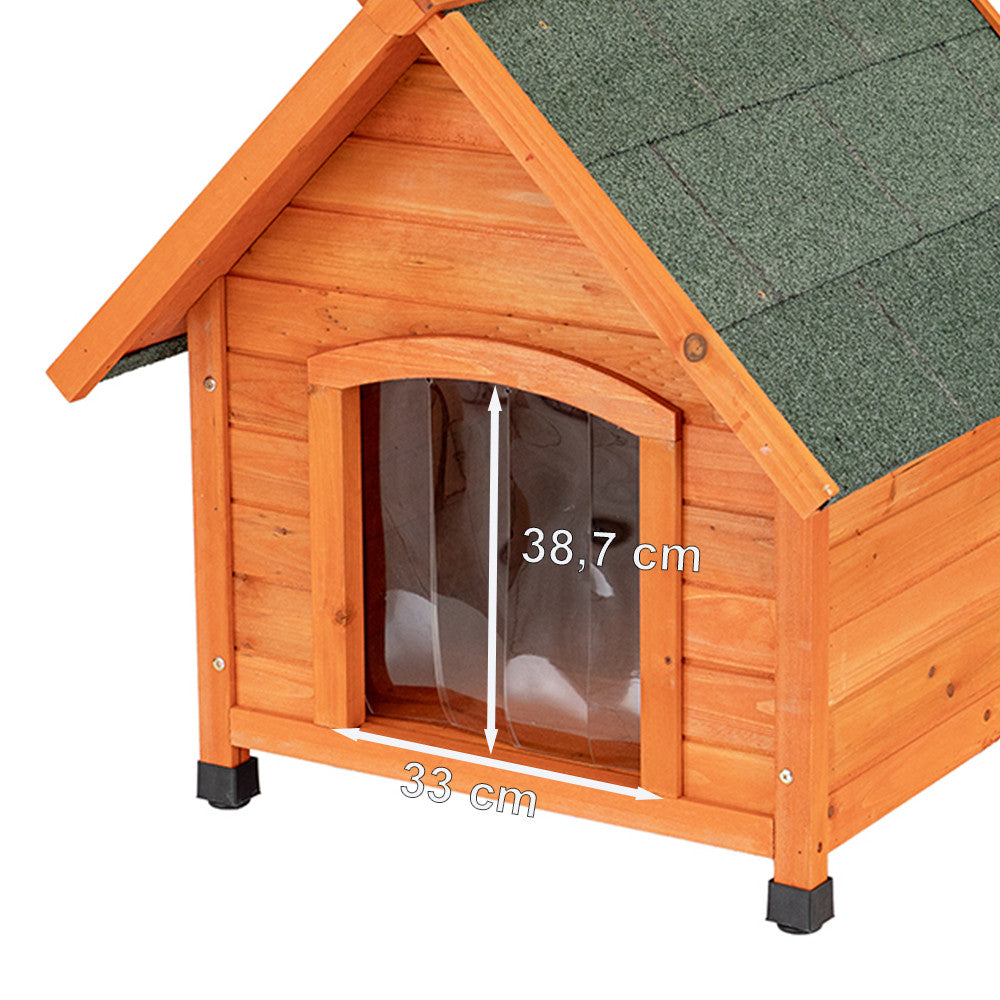 • Kialakítás: sátortetős, klasszikus fa kutyaház