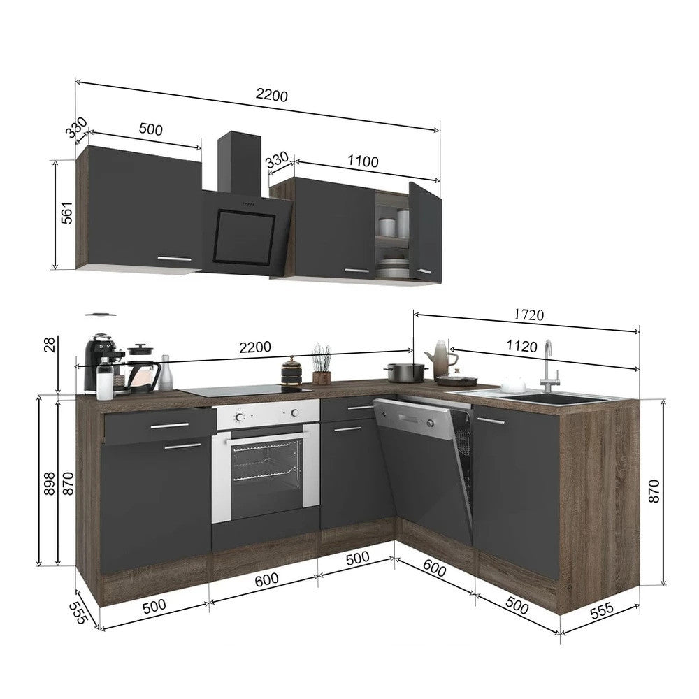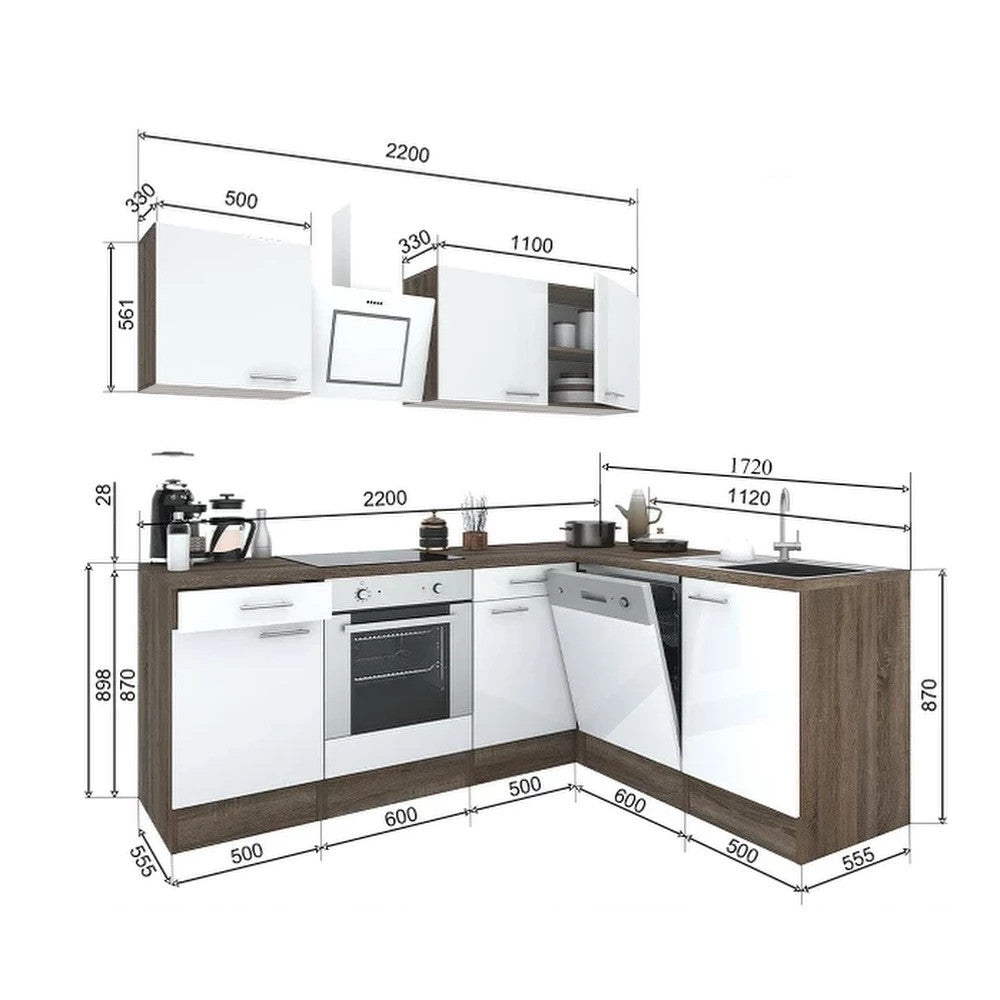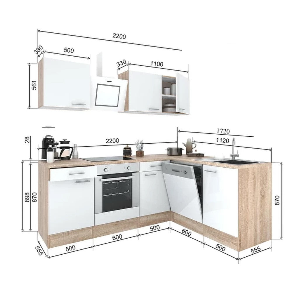 Yorki 220 sarok konyhabútor alsó sütős kivitelben