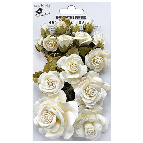 Kreatív dekorvirág Little Birdie Rosalind Shabby Chic Bouquet 21 részes fehér