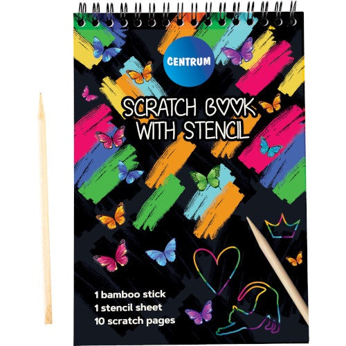 Kreatív kaparós füzet Centrum spirálos, 17,5x12,4 cm (10 kaparós oldal) stencillel és pálcával