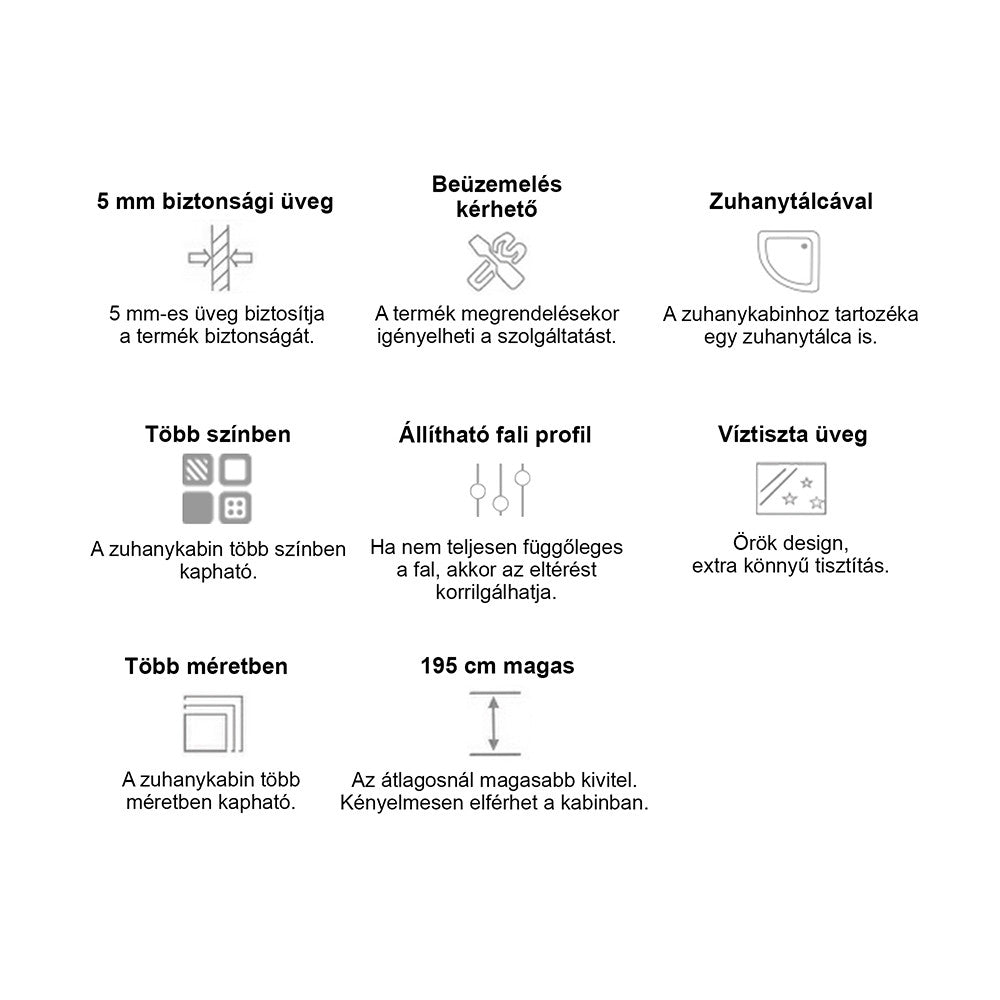 Polo Black II 80x80 cm szögletes fekete hátfalas zuhanykabin zuhanytálcával