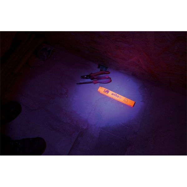 - Méterbeosztású pálca gyorsan és egyszerűen megtalálható – az UV-fénnyel még sötét környezetben is.