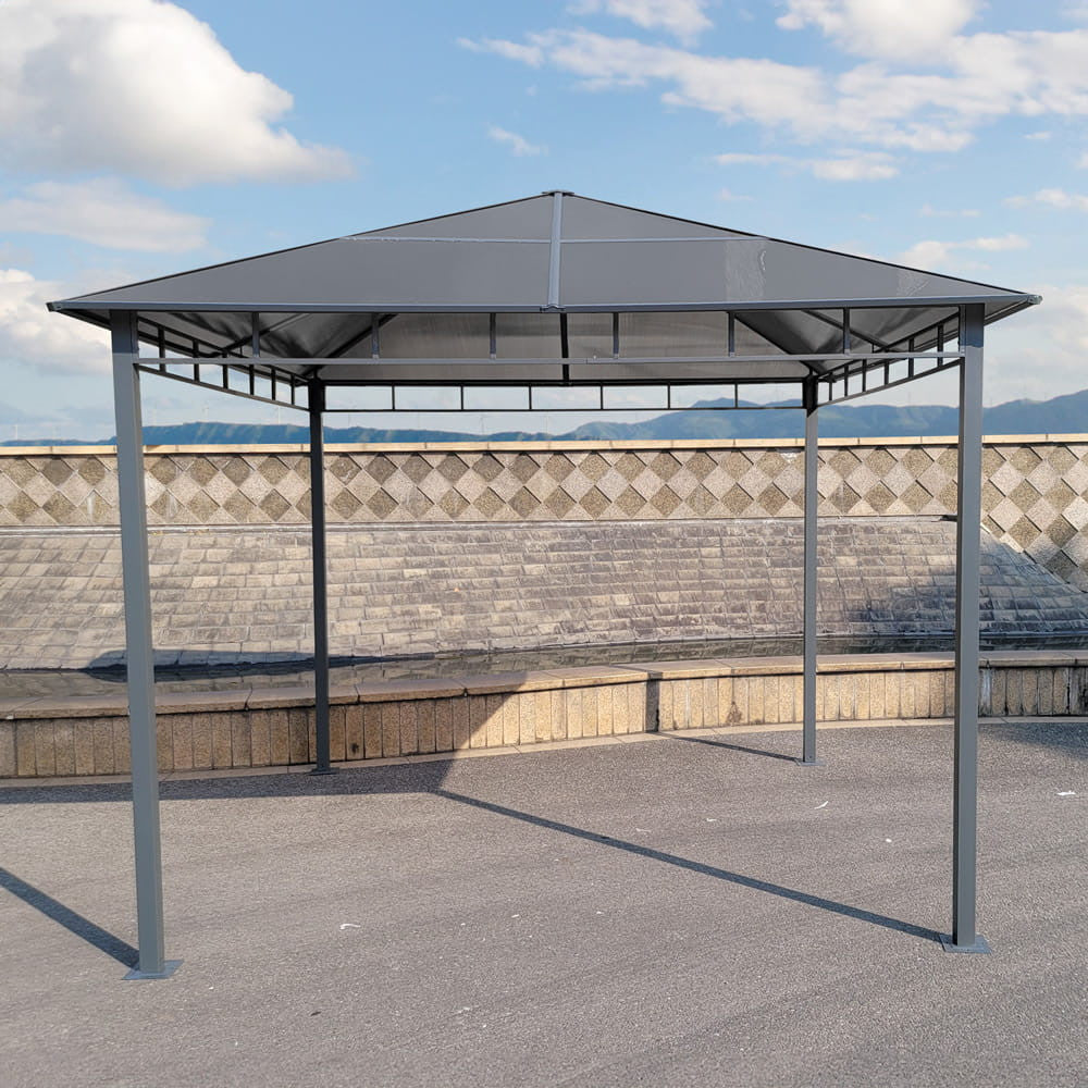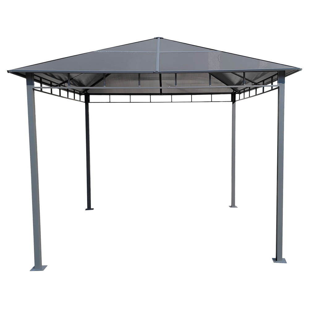 • Ez a kerti pavilon polikarbonát tetővel rendelkezik, amely hatékony védelmet nyújt a napsütés, eső és szél ellen.