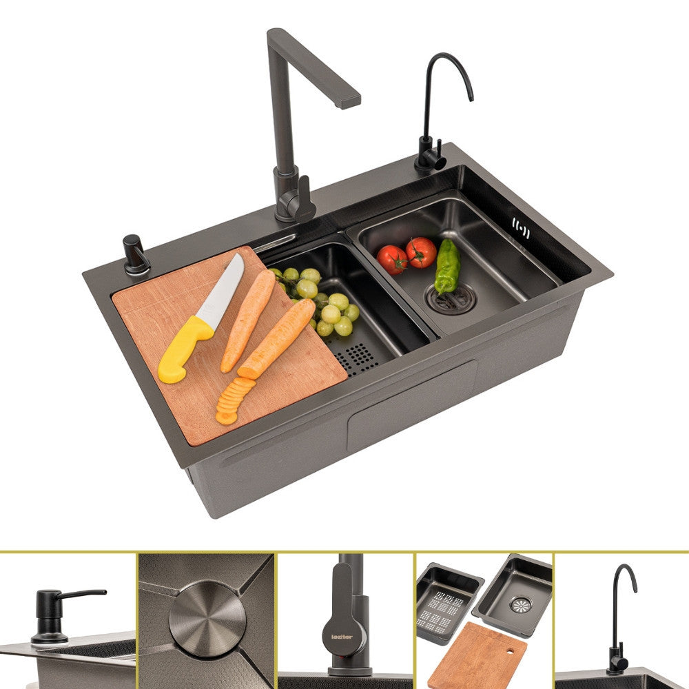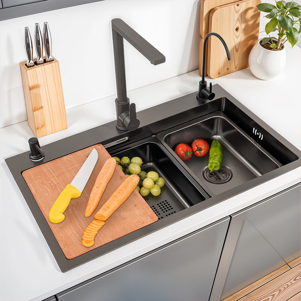 A hagyományos mosogatók gyorsan karcolódnak, elveszítik fényüket, és nem passzolnak a modern konyhákhoz. Ez nemcsak esztétikai probléma, de hosszú távon drágábbá is teszi a fenntartást, hiszen gyakrabban kell cserélni a mosogatót.