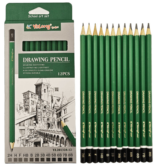 Grafitceruza készlet, 12 db-os, 8B-2H, hatszögletű, Yalong YL201328-12