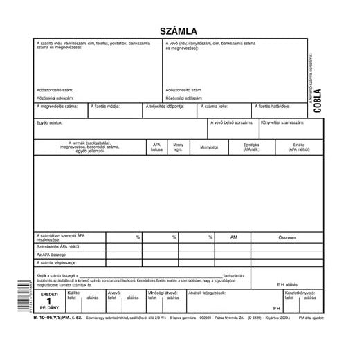 Számla egy számlaértékkel szállítólevél 5 lapos garn. A/5 álló