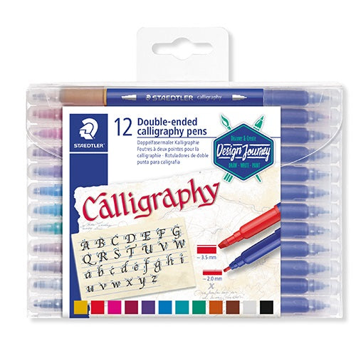 - 12 db különböző színű, prémium minőségű, kétvégű kalligrafikus marker