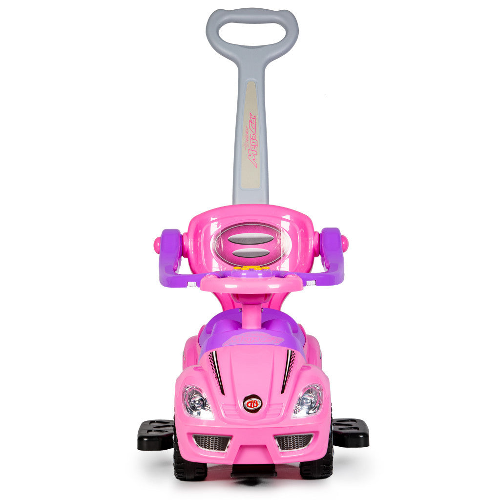 Ride-on autó tolóautó 3 az 1-ben deluxe fogantyúval és zenélő panellel rózsaszín
