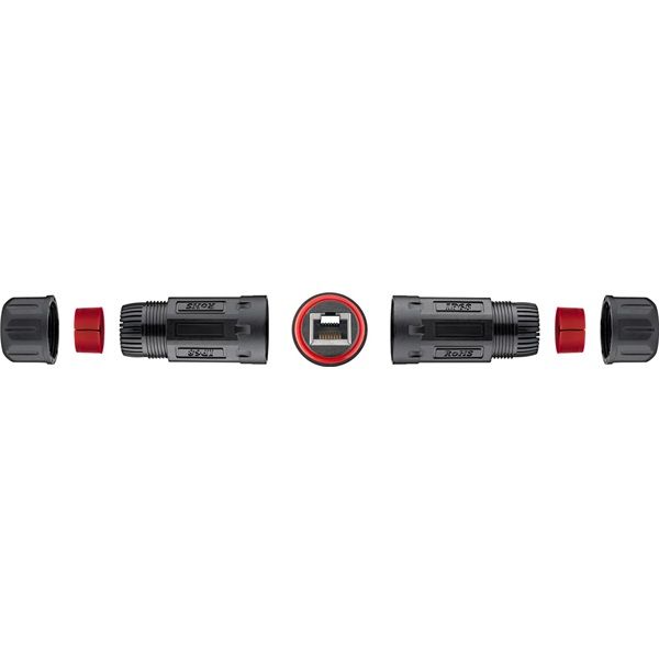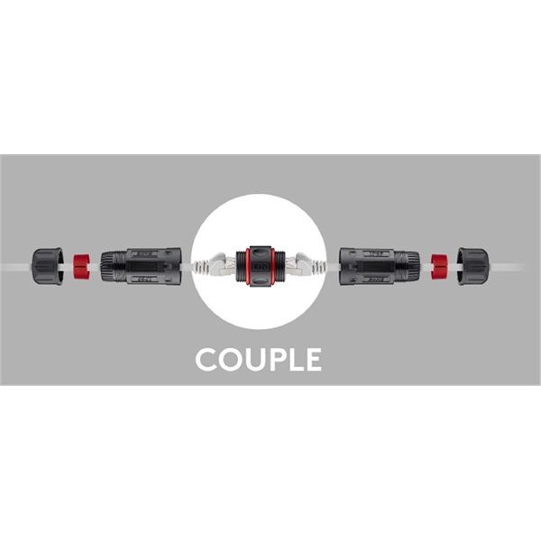 Kültéri (IP68) RJ45 moduláris csatlakozó, CAT 6 por- és vízálló, 2x RJ45 anya (8P8C)