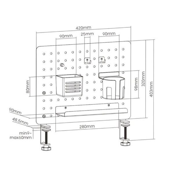 VALUE Asztalra szorítható tábla, opcionális tartóelemekkel, Clamp Mount Pegboard, Gamer / Office / Irodai, fehér