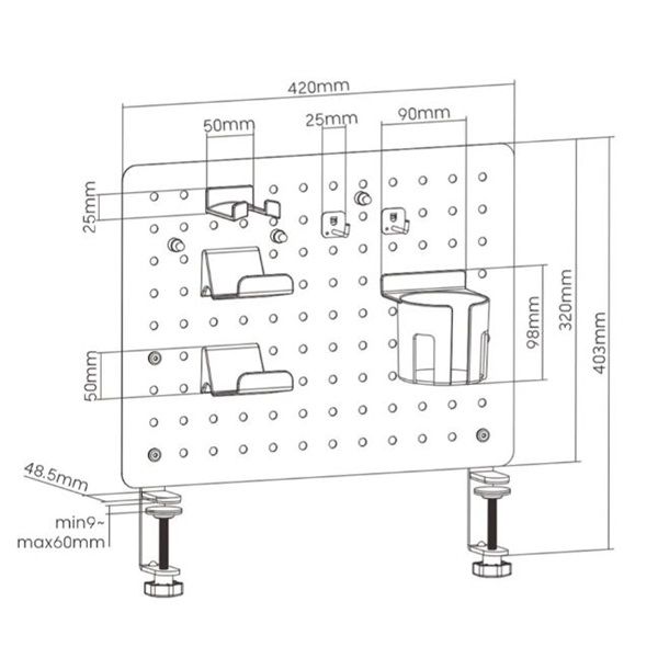 A pegboard készlet funkcionális, sokoldalú és stílusos otthonszervezési termékeket kínál ovális lyukakkal és vízálló felületekkel. Az irodai kellékektől és dekorációktól kezdve a kézművességig és a könyvekig ez a modern stílusú szerelhető polckészlet tökéletes tárolásra és kiállításra. Ezenkívül a masszív acélszerkezet és a porszórt felület szilárd és hosszan tartó teljesítményt biztosít.