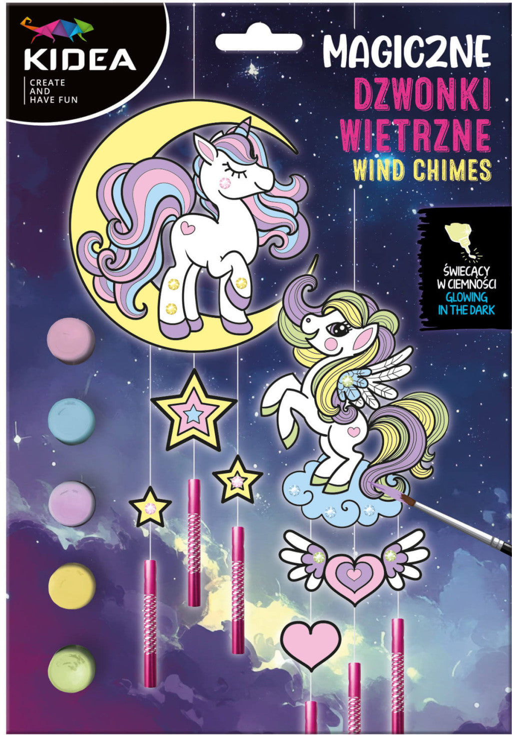 Szélcsengő készítő szett, foszforeszkáló, unikornisos, Kidea