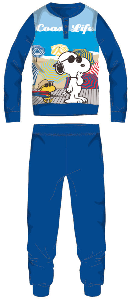 Snoopy hosszú vékony pamut gyerek pizsama -  jersey pizsama - középkék - 98