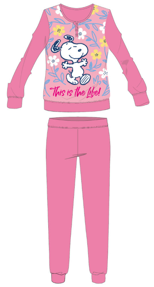 Snoopy hosszú vékony pamut gyerek pizsama -  jersey pizsama - rózsaszín - 98