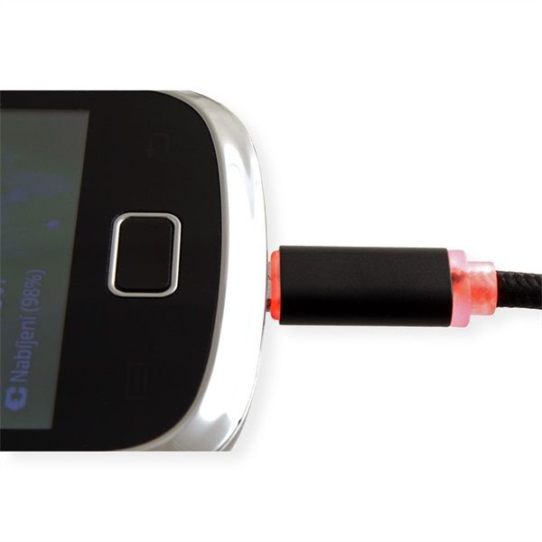 ROLINE Kábel USB 2.0 LED töltőkábel, A - Micro B, M/M, 1 m, fekete
