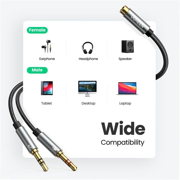 UGREEN 3,5 mm anya - 2 apa audió kábel ABS házzal