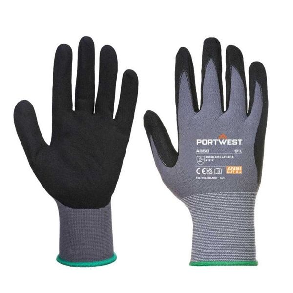 Extrakönnyű 15g nylon és elasztán szálból készült munkavédelmi kesztyű habosított nitril és PU (poliuretán) bevonattal.