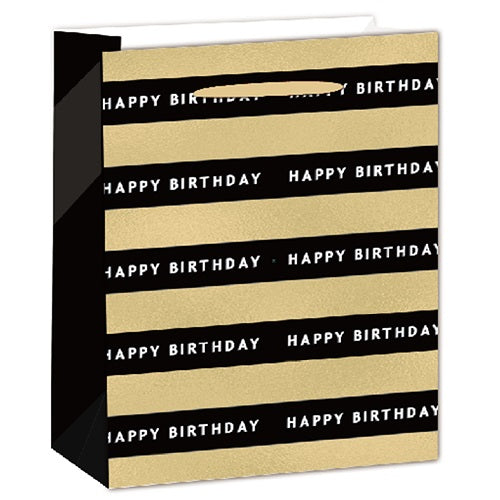Dísztasak matt 11x14 cm fekete/arany Happy Birthday