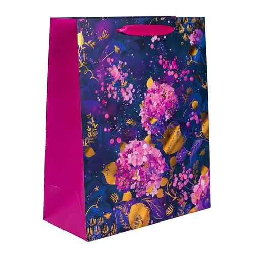 Dísztasak matt 18x23 cm lila/arany virágok