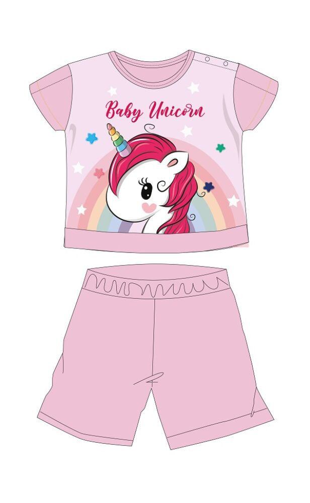 Unikornis nyári rövid ujjú baba pizsama - pamut jersey pizsama - világosrózsaszín - 92