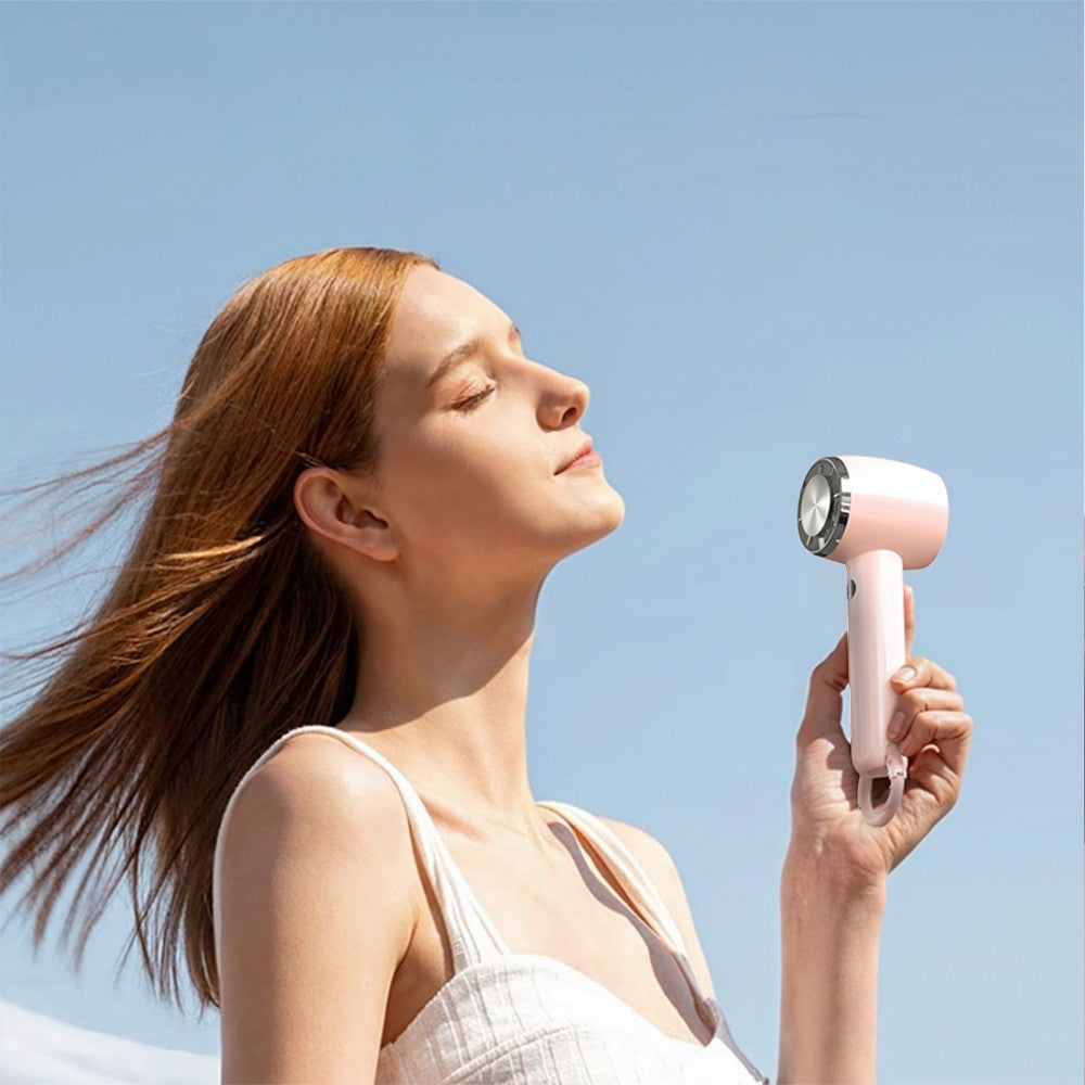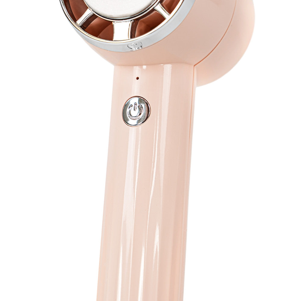 A ventilátor állítható döntési szögének köszönhetően nemcsak kézben használható, hanem stabilan az asztalra is állítható – így írás, munka vagy sminkelés közben is élvezheted a hűsítő hatást.