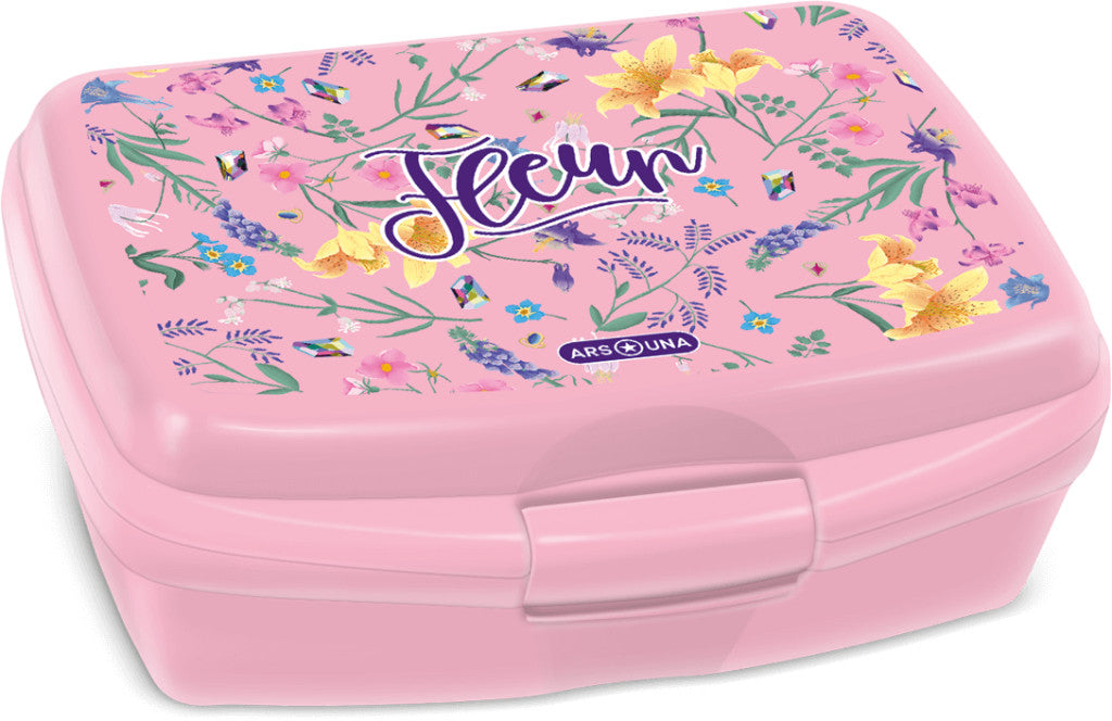 Fleur uzsonnás doboz, rózsaszín, virágos