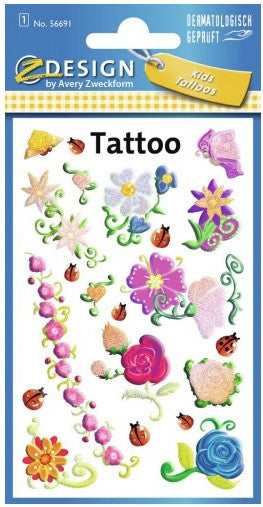 Tetoválás matrica szett, színes virágok 7,5x12cm