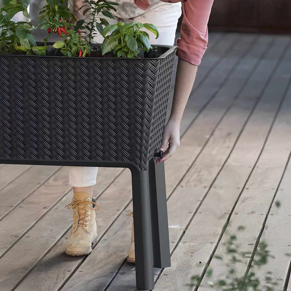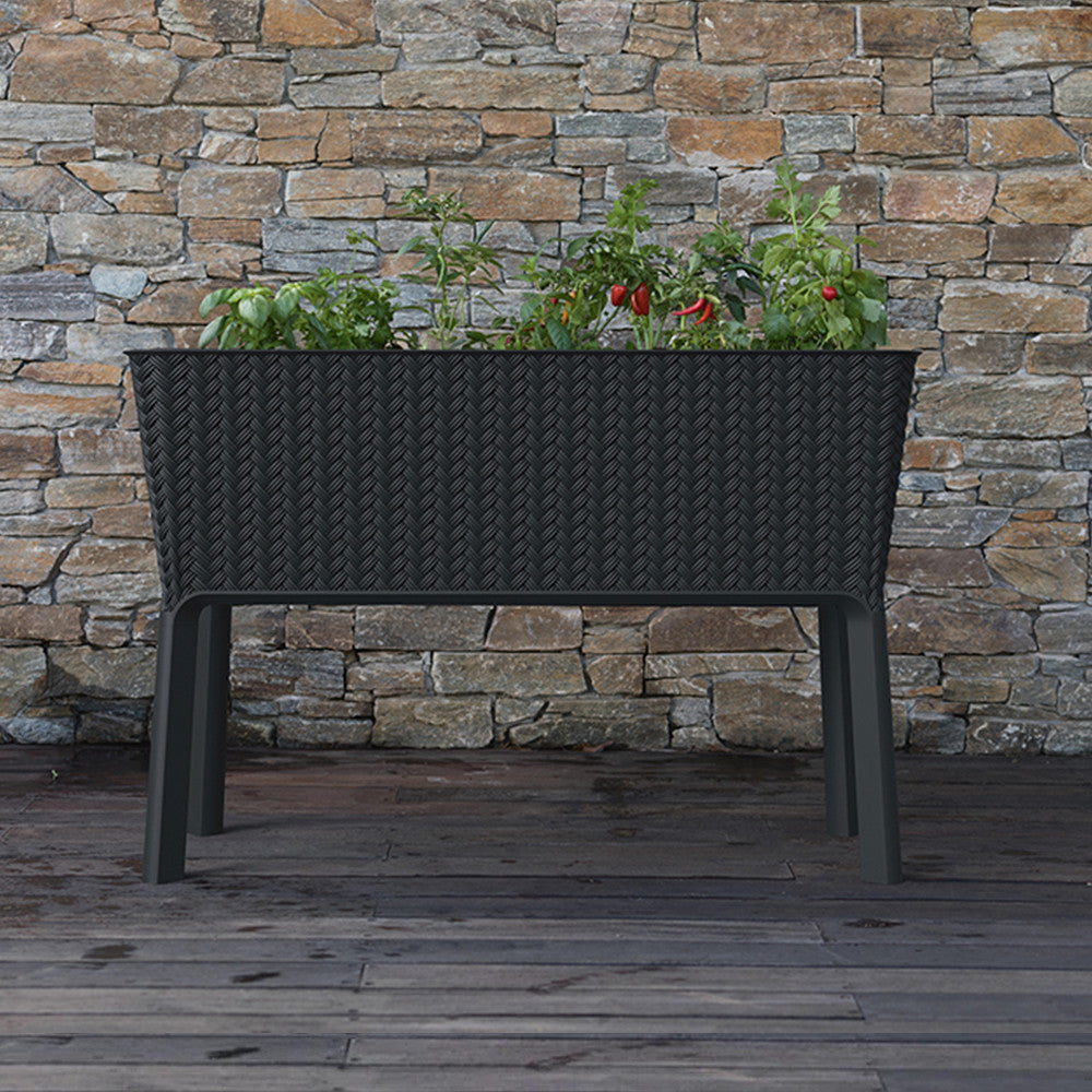 Splendor megemelt műanyag kerti virágláda 120l fonott rattan - antracit szín