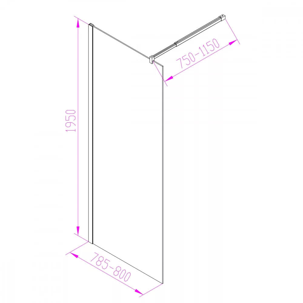 • Típus: 80x195 cm Walk-In zuhanyfal, 8 mm edzett biztonsági üveg, krómozott alumínium profillal