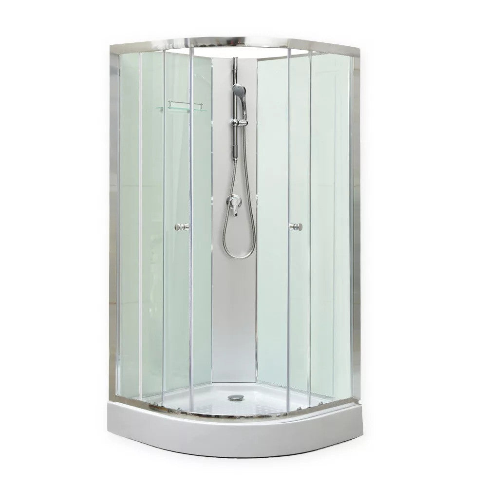 íves zuhanykabin zuhanytálcával és teljes felszereltséggel