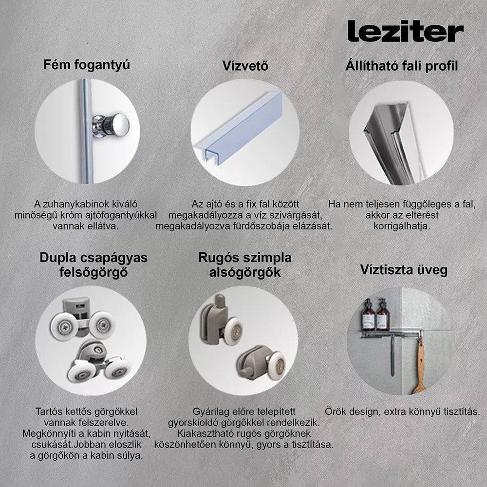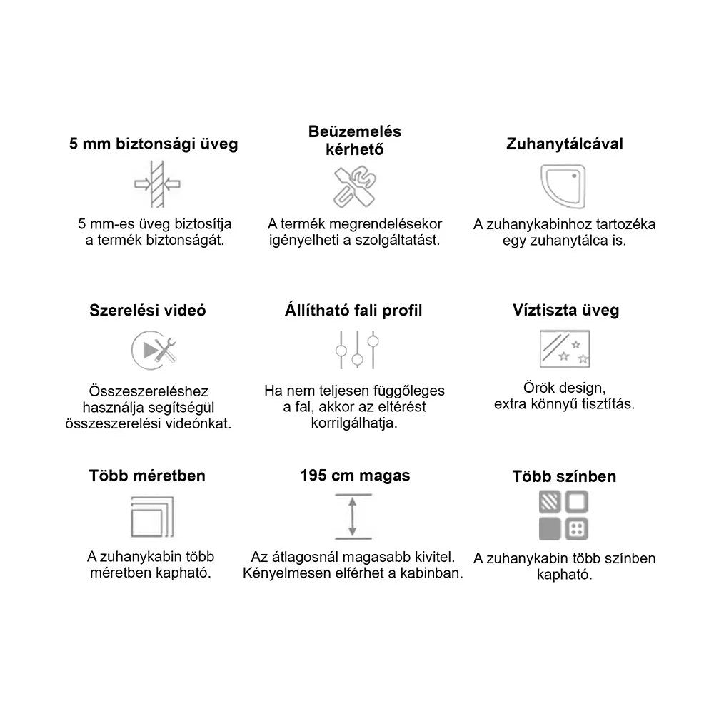 • Akik hosszú távú, stabil szerkezetű zuhanykabint szeretnének csendes ajtómozgással.
