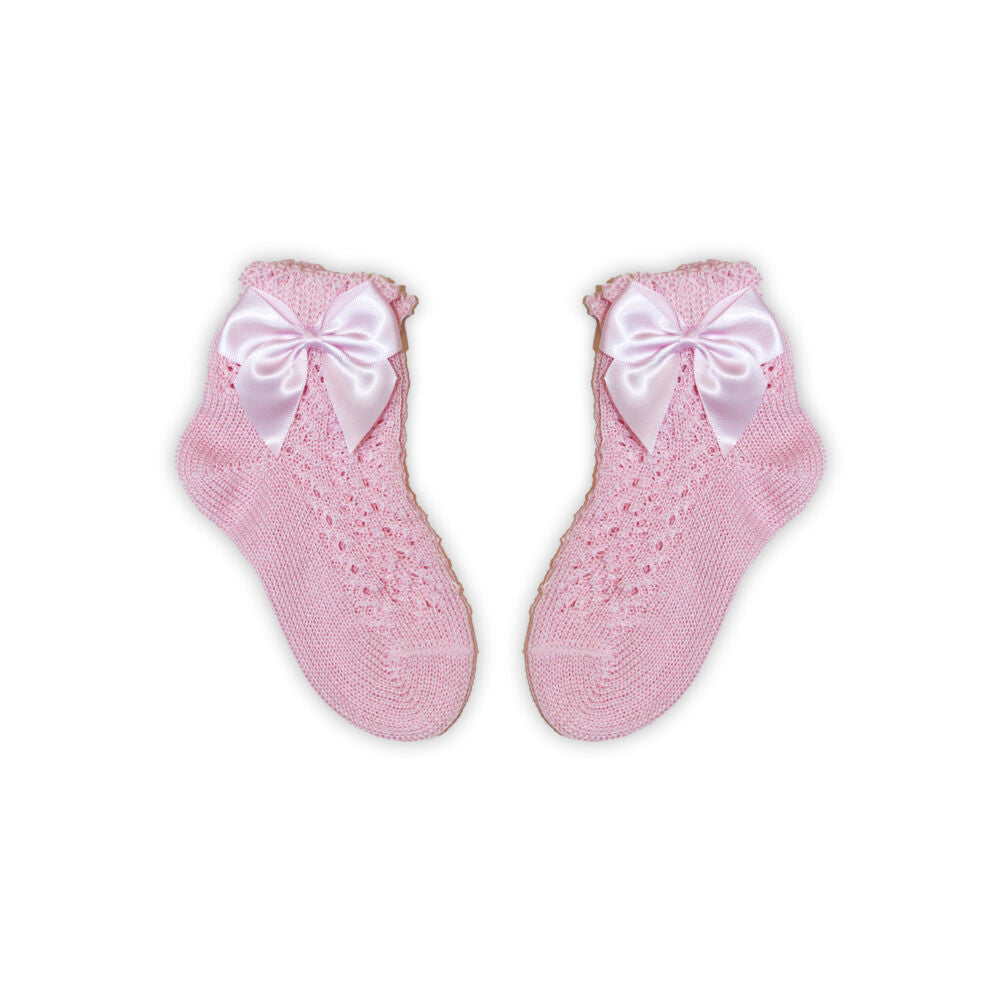 100% pamut kislány baba bokazokni horgolt felsőrésszel - masni díszítéssel - rózsaszín - 13-14