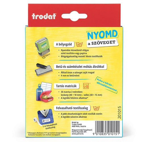 - Nyomd a szöveget! - Trodat Stamp`n Stick kirakós bélyegzőszett textilfestékkel és címkékkel.