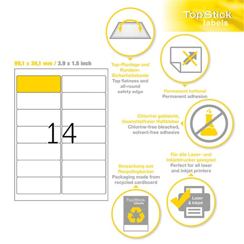 Etikett címke Topstick 99.1x38.1 mm szegéllyel 100 ív 1400 db/doboz