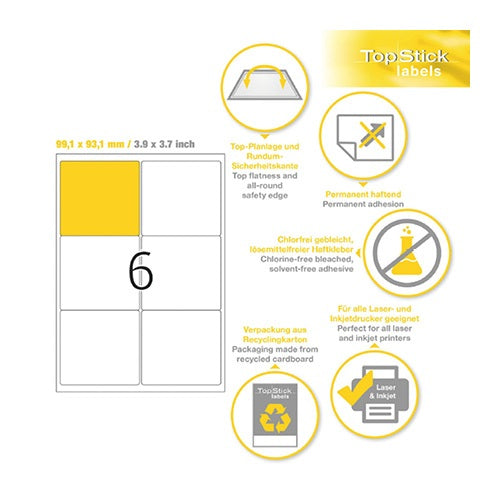 - Öntapadó etikettcímkék tartós ragasztással, A4-es lapokon.