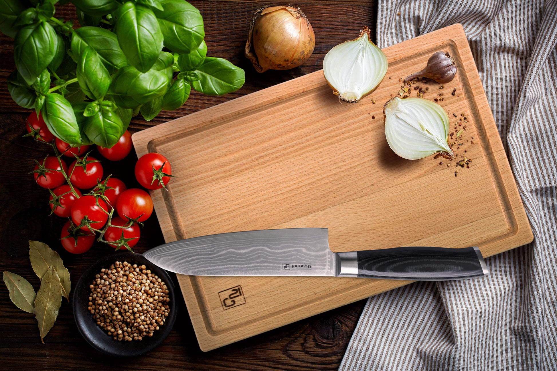 gyártásánál a bükkfát választottuk a különösen jó tulajdonságai miatt. A tölgyfával ellentétben a bükkfa nem hagy keserű utóízt az ételeken, nem
