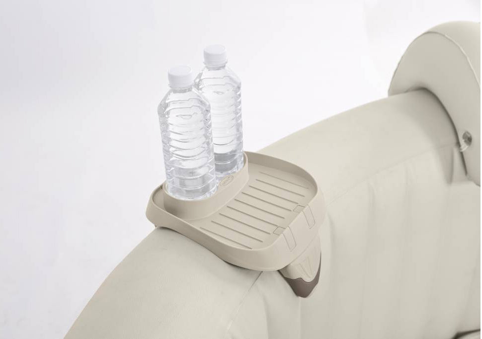 Igyál még a pezsgőfürdőben is. A Marimex tartóban legfeljebb 2 üveg ital tárolható, 2 ivólyukkal van felszerelve. A kis polc kisebb tárgyak vagy apró ételek tárolására is alkalmas. A tartó kompatibilis a felfújható pezsgőfürdőkkel az Intex Pure Spa-val vagy a 20 és 24 cm közötti falvastagságú pezsgőfürdőkkel.