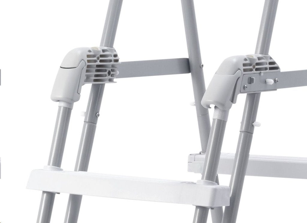A létra fém szerkezete ellenáll a rozsdásodásnak. A létrafokok minőségi erős műanyagból vannak, csúszásmentesek, hogy megakadályozzák a megcsúszást miközben kiszáll a medencéből. A létrafokok teherbírása 136 kg.