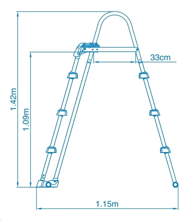 A medence létra fontos biztonsági elem is. Fürdés utánkönnyen levehető a külső része a műanyag létrafokokkal, így megakadályozza, hogy a medencébe essenek a gyerekek vagy az állatok.