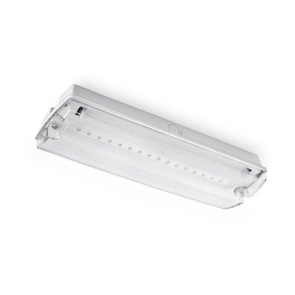 Vészhelyzeti lámpa, kiválóan észlelhető, mutatja a vészkijáratokat. Megfelel a tűzvédelmi és katasztrófavédelmi szabványoknak.