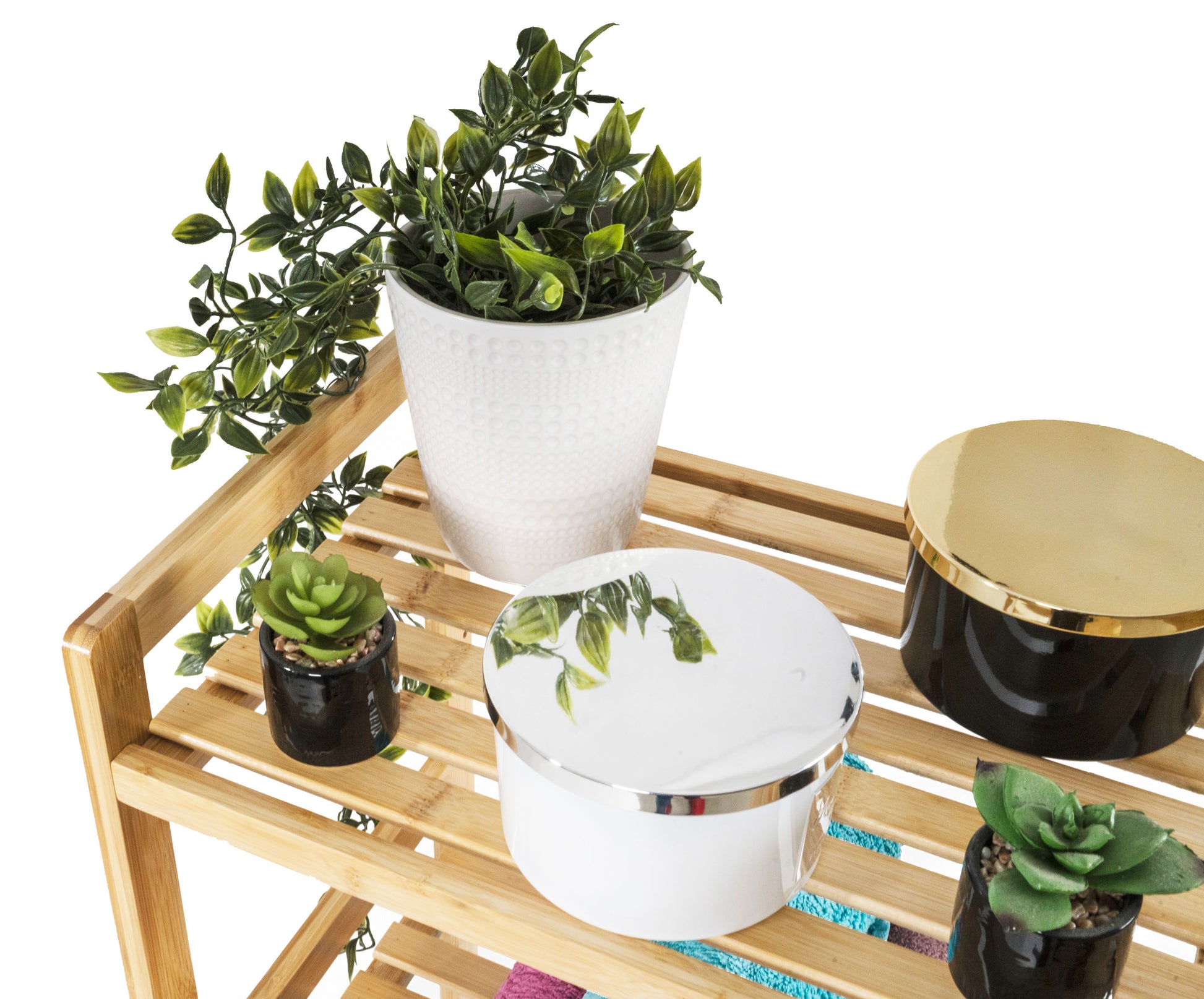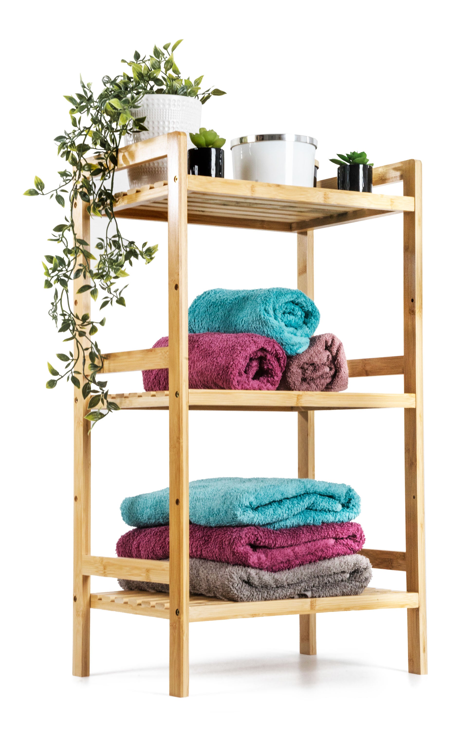 A hárompolcos bambusz állvány kellemes, természetes hatást kölcsönöz a belső térnek, könnyedség és természetesség érzetét adja, miközben szilárdsága és hosszú élettartama stabilitást és tartósságot biztosít.