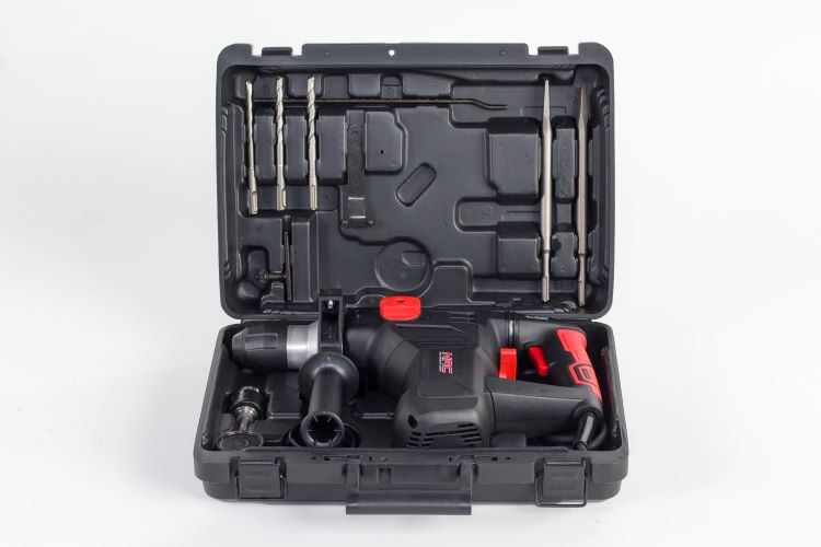 A NAC HE150-GY fúrókalapács 1500 W-os teljesítményű felújításokhoz, szerelésekhez, könnyű építési munkákhoz és különféle javításokhoz használható. Kalapáccsal fúrhatunk vele kőbe, betonba vagy téglába.A kalapács fába, kerámiába ésfémbe is fúrható. A biztonságosabb szállítás érdekében egy praktikus műanyag tokot használnak, amelybe egy fúró, 3 fúrófej és 2 véső is belefér.